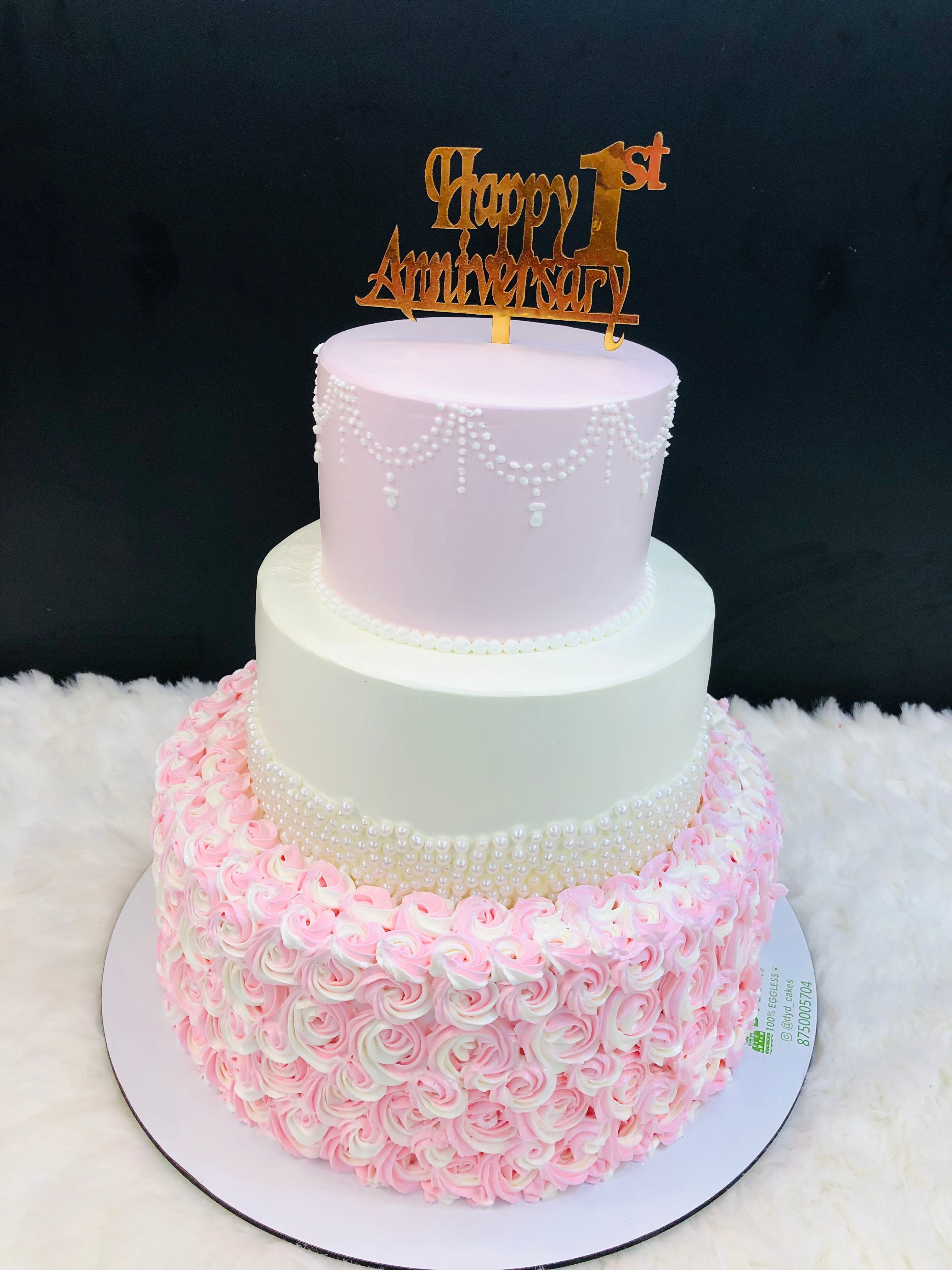 Celebrate your first anniversary in style with our exquisite 3-tier cake, designed to impress and delight. This stunning cake is a perfect blend of elegance and taste, making it an ideal centerpiece for your special occasion.