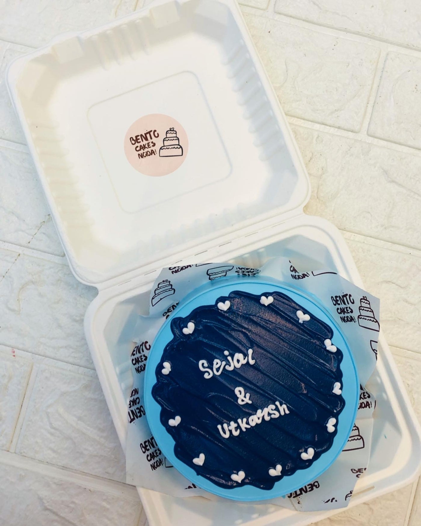 Please Note: Dark Color Icing On Cakes Sticks on Hands, Leave Stains and might be bitter in Taste. Discover the elegance of our Aesthetic Dark Blue Bento Cake. Made with high-quality ingredients, this cake offers a rich and indulgent taste, while its beautiful dark blue color adds a touch of sophistication to any occasion. Perfect for showcasing your refined taste and impressing your guests.