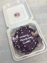 Please Note: Dark Color Icing On Cakes Sticks on Hands, Leave Stains and might be bitter in Taste.  Feast your eyes and tastebuds on our Purple Birthday Theme Bento Cake. Made with the finest ingredients and expertly crafted, every bite is a celebration of indulgence. Perfect for any birthday occasion, this cake is not only visually stunning with its purple theme, but also deliciously satisfying. Order yours today!