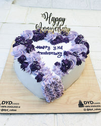 This elegant Blue Purple Anniversary Heart Cake is perfect for celebrating love and anniversaries. With stunning shades of blue and purple, this heart-shaped cake is sure to be a showstopper at any special occasion. Made with high-quality ingredients and a touch of love, this cake will be the perfect centerpiece for your celebration.