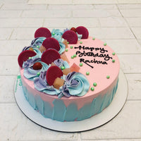 Introducing our Pink Chocolate on Blue Pink Cake, a beautifully crafted dessert that combines the sweet and creamy texture of pink chocolate with the light and fluffy layers of a blue pink cake. Experience a unique and indulgent taste sensation with our one-of-a-kind creation.