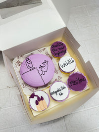 Celebrate unforgettable friendships and heartfelt goodbyes with our "Cheers to New Beginnings Bento & Cupcake Set." This beautifully coordinated purple-themed cake and cupcake box is the perfect send-off for someone close to your heart.