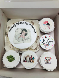 Indulge in the ultimate beauty treat with our Makeup Lover Theme Bento Combo Cake! This unique and luxurious cake features a mix of delicious flavors and is carefully designed to resemble a makeup lover's dream. Perfect for any special occasion or as a gift for the beauty enthusiast in your life.