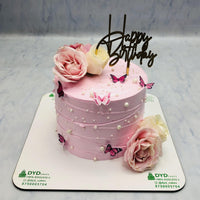 Aesthetic Design Cake with Butterflies - 1 KG / Pineapple