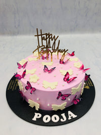 This elegant and stunning Beautiful White Pink Butterflies Cake features delicate butterflies made of white and pink icing resting atop a perfectly moist and delicious vanilla cake. Bring beauty and sweetness to any occasion with this masterpiece.