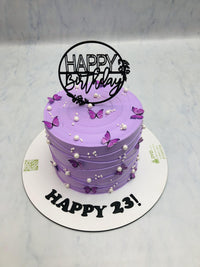 Indulge in this stunning Aesthetic Purple Butterfly Cake. Made with exquisite attention to detail, each cake features vibrant purple and delicate butterfly embellishments. Perfect for any occasion, this cake is a true work of art that is sure to impress.