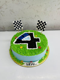 Indulge in a unique treat with our Green Grass Car Track Cake. Made with rich chocolate cake and topped with a realistic green grass design, this cake is perfect for car enthusiasts and birthday parties. Its intricate detailing and delicious taste will impress any fan.