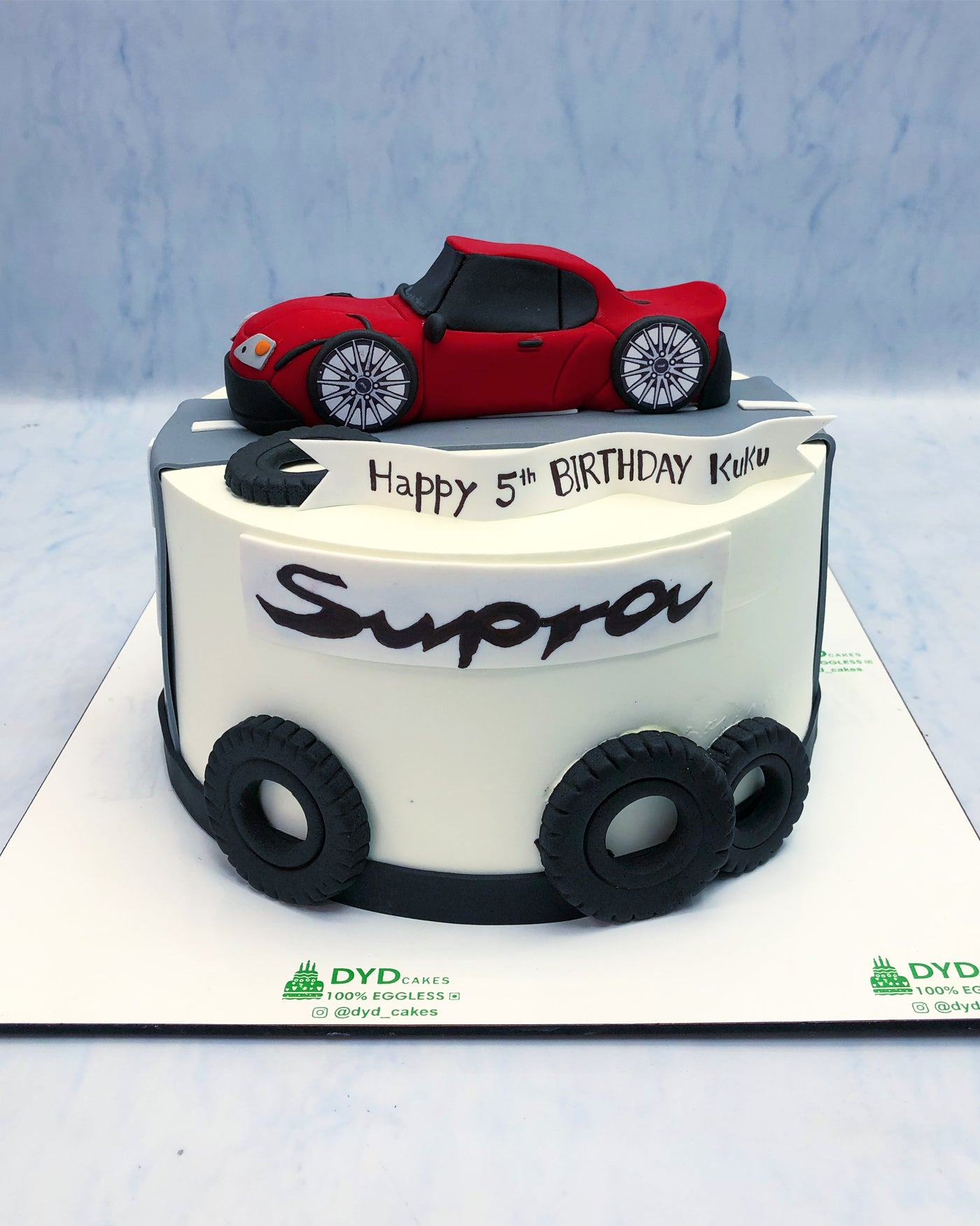 This Red Supra Car Theme Cake is the perfect addition to any car enthusiast's event. Featuring a realistic replica of the iconic red Supra, this cake is sure to impress and delight. Made with high-quality ingredients, it's not only visually appealing but also delicious. Elevate your celebration with this unique and eye-catching cake.