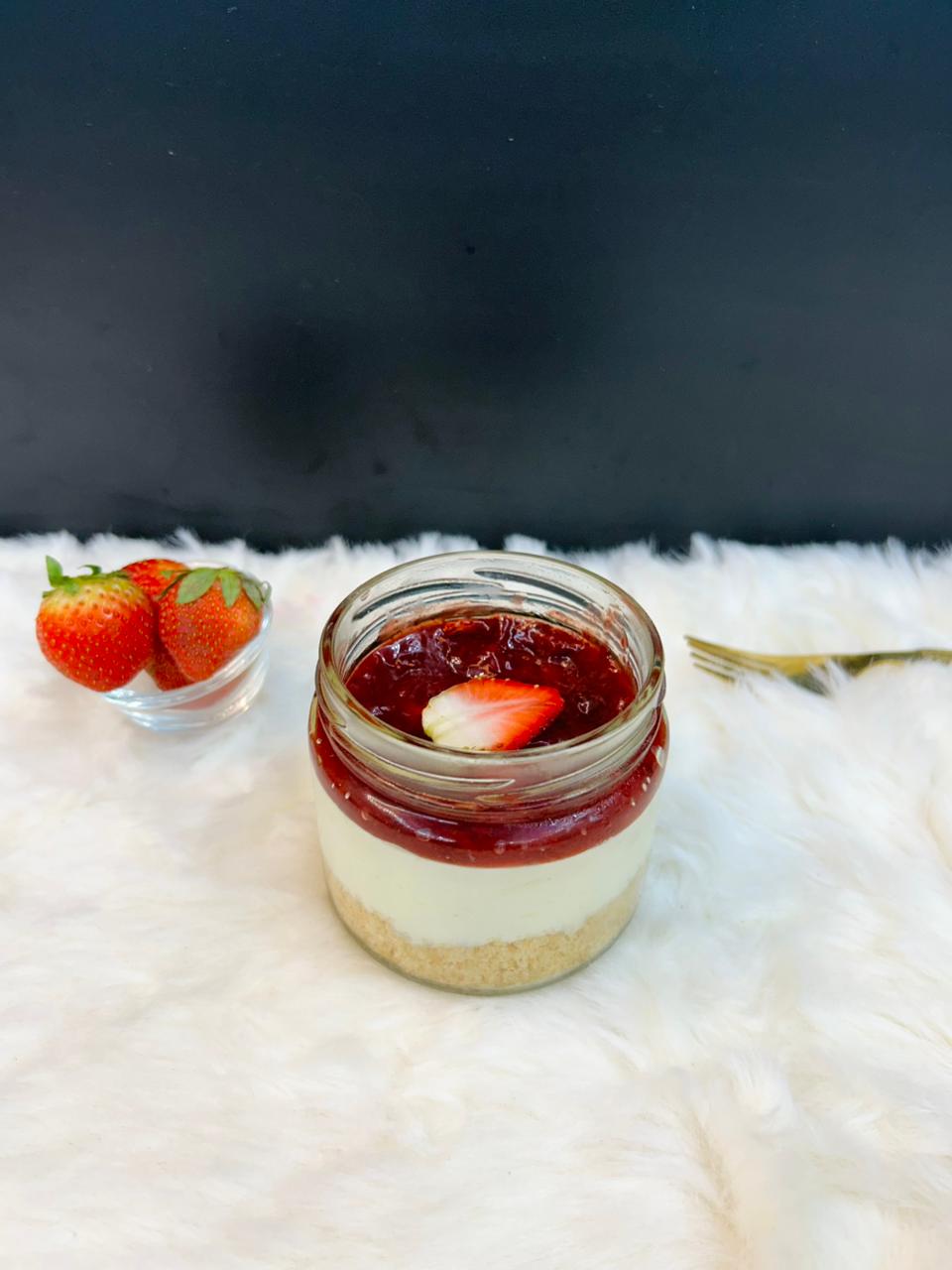 Indulge in the creamy and rich Strawberry Non-Baked Cheesecake Jar. Made with fresh strawberries and delicious cheesecake filling, this portable treat is perfect for satisfying your dessert cravings on the go. With a perfect balance of sweet and tangy flavors, it's a must-have for any cheesecake lover.