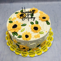 This stunning Sunflowers Theme Designer Cake is a work of art that will be the centerpiece of any occasion. Hand-crafted with real sunflower accents, this cake is not only visually impressive but also delicious. Made with the freshest ingredients, it's sure to please every palate. Order now for a truly memorable experience.
