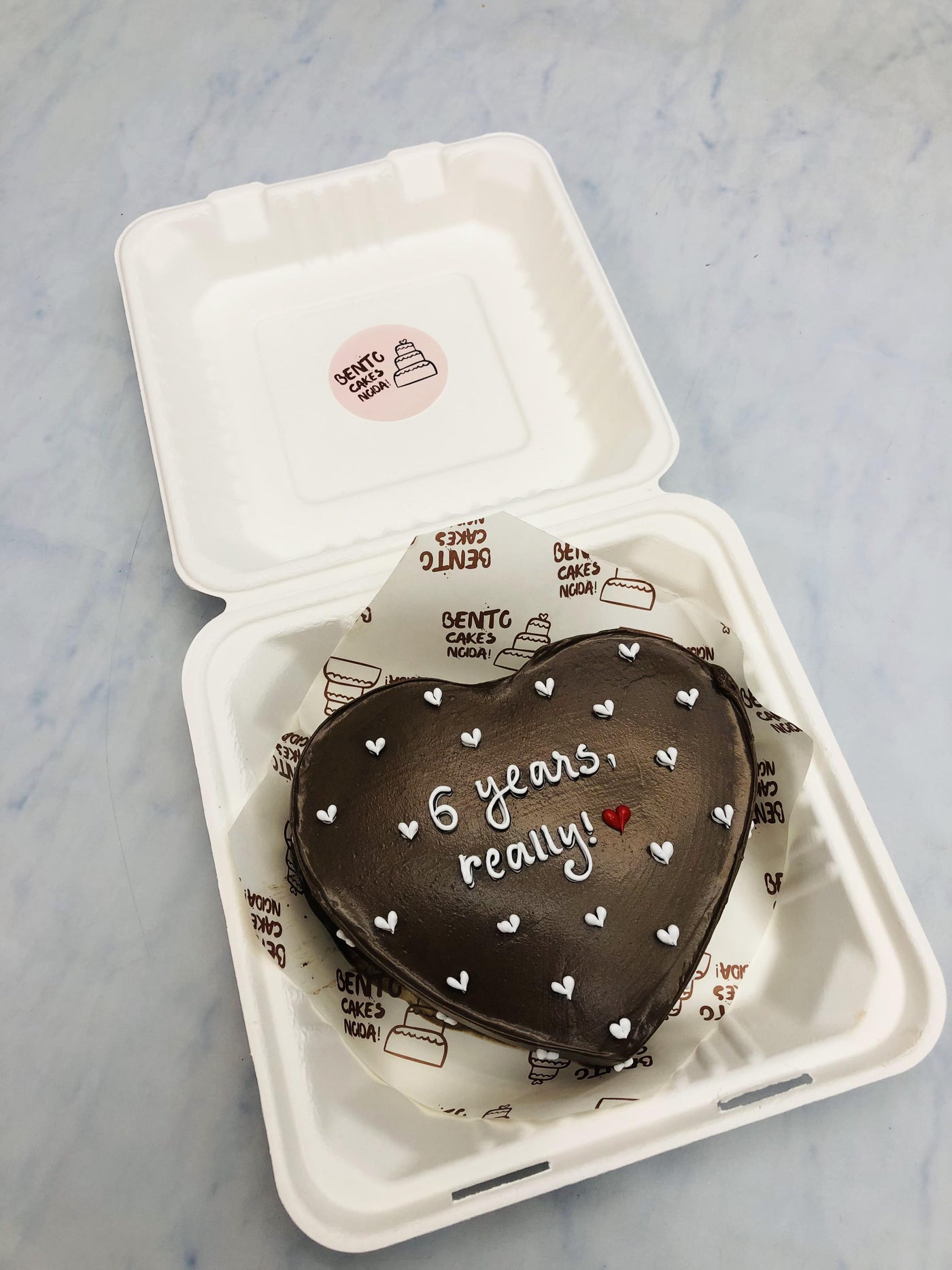 Brown Heart Anniversary Bento Cake - 450 Grams / Pineapple
