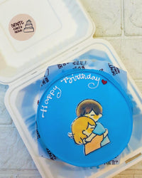 Please Note: Dark Color Icing On Cakes Sticks on Hands, Leave Stains and might be bitter in Taste. This Sky Blue Couple Theme Bento Cake is a perfect addition to any celebration. The sky blue color and intricate details of the cake make it a visually appealing and aesthetically pleasing treat. Made with high-quality ingredients and attention to detail, this cake is sure to impress and satisfy any sweet tooth.
