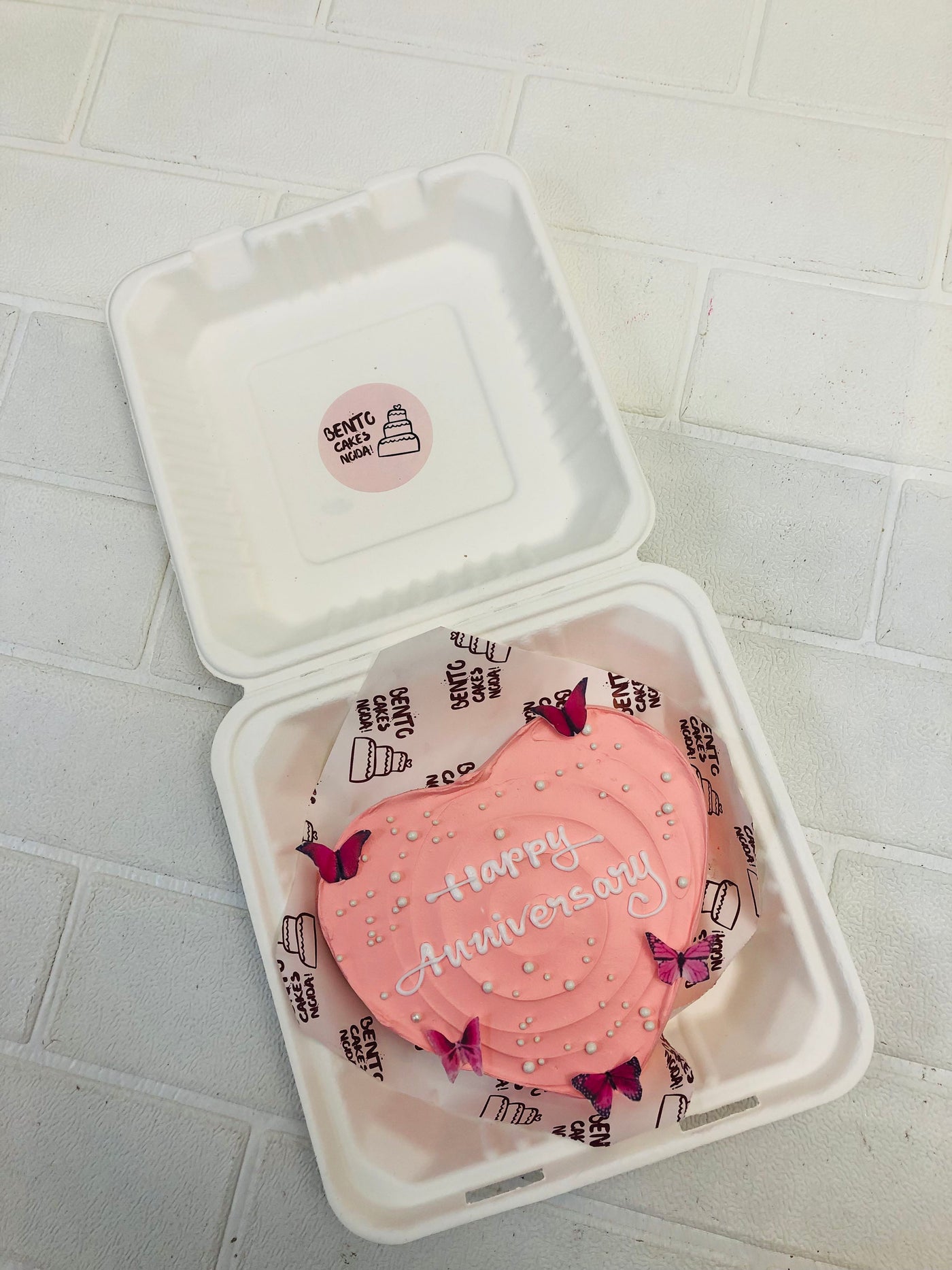 This Butterfly Theme Anniversary Bento Cake boasts a beautiful butterfly design, perfect for celebrating special occasions. With a delicious and moist cake inside, it is sure to impress guests and make for a memorable dessert. Made with high-quality ingredients, it is both stunning and tasty.