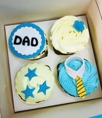 Surprise your superhero this Father's Day with our special Blue and white theme cupcake quartet! This playful set of 4 features adorable "I Love Dad" messages and dapper tie designs that are almost too cute to eat (almost!). Each cupcake is a tiny celebration of Dad's awesomeness, crafted to bring a smile before the first bite. The perfect sweet treat for the man who ties your family together with love!