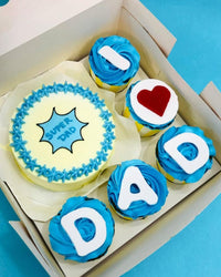 Celebrate Dad's special day with ourSuper Dad Father's Day Bento Combo! This fun-filled package includes one adorable bento cake and five delicious cupcakes – the perfect way to show your superhero dad how much he means to you. A sweet treat that's sure to make him smile