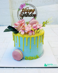 Experience the exquisite combination of beautiful blue and yellow flowers in our luscious cake. Made with the finest ingredients, this cake is not only visually stunning but als...