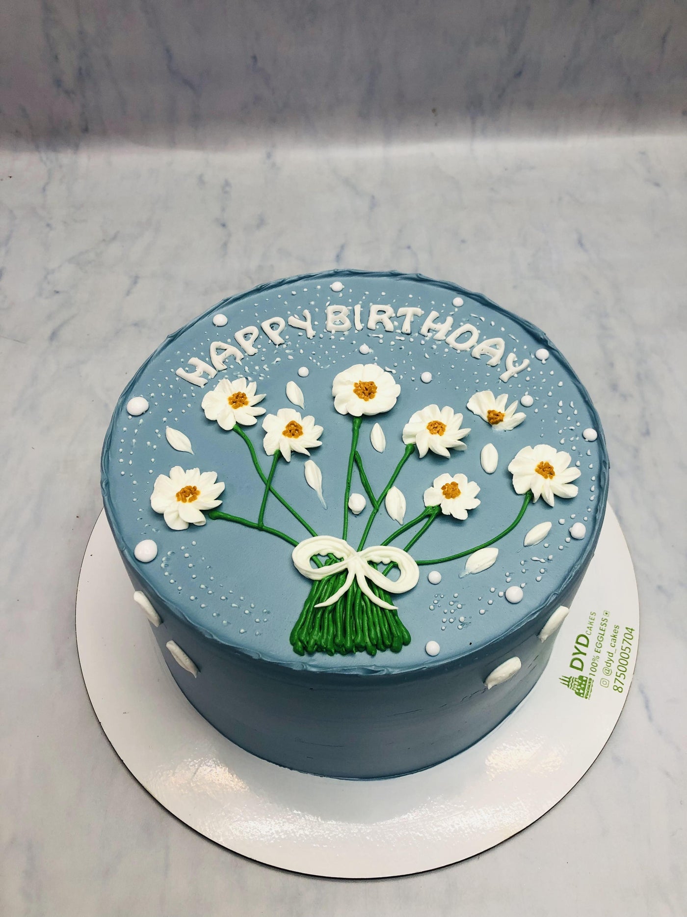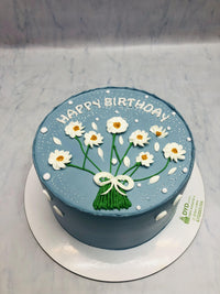 This stunning cake features delicate little flowers on a sky blue background. Perfect for any occasion, the intricate design adds a touch of elegance to any celebration. Made with high-quality ingredients, it's as delicious as it is beautiful. Indulge in a one-of-a-kind dessert experience with our Little Flowers on Sky Blue Cake.