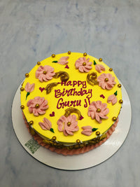 Add a touch of elegance to any occasion with our Pink & Golden Flowers on Yellow Cake. The delicate flowers are crafted from high-quality ingredients, adding a burst of flavor and visual appeal to this delectable treat. Perfect for birthdays, weddings, or any special event.