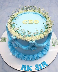 This elegant Sky Blue Cake features delicate White Florals for a beautiful touch. Made with high-quality ingredients, the cake offers a moist and fluffy texture that is sure to delight your taste buds. Perfect for weddings, birthdays, or any special occasion. Order now and impress your guests with this stunning dessert.