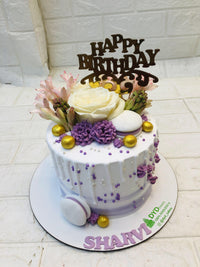 Indulge in a stunning, elegant White Blue Cake adorned with colorful flowers. Made with only the finest ingredients, this delectable dessert will surely add a touch of beauty to any occasion. Enjoy a flawless combination of taste and visual appeal.