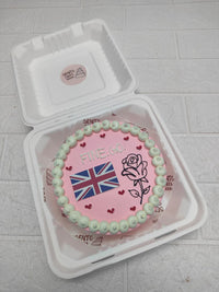 Make a bold statement with this pink Bento cake featuring a rose sketch, red hearts, and the Union Jack flag. “FINE, GO.” is piped in capital letters, making it ideal for farewell gifting, breakup recovery, or expressive self-love moments. Packaged in a white takeout-style box with branded liner, it’s compact, stylish, and emotionally charged.