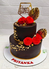 Celebrate in style with our luxurious 2-tier Elegant Chocolate Floral Birthday Cake!