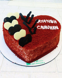 This Black White Hearts On Red Velvet Cake is a showstopper dessert that combines rich red velvet with elegant black and white heart decorations. Made with the finest ingredients, it's perfect for special occasions or simply indulging in a delicious treat. Enjoy the perfect balance of flavors and a visually stunning dessert with this Black White Hearts On Red Velvet Cake.