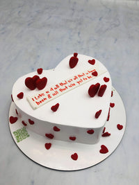 Add a touch of love to any occasion with our Red Hearts on White Heart Shape Cake! Made with vibrant red hearts and a heart-shaped design, this cake is sure to make a statement. Perfect for anniversaries, birthdays, or Valentine's Day, this cake is a delicious treat that will show your love and appreciation. Try it today!