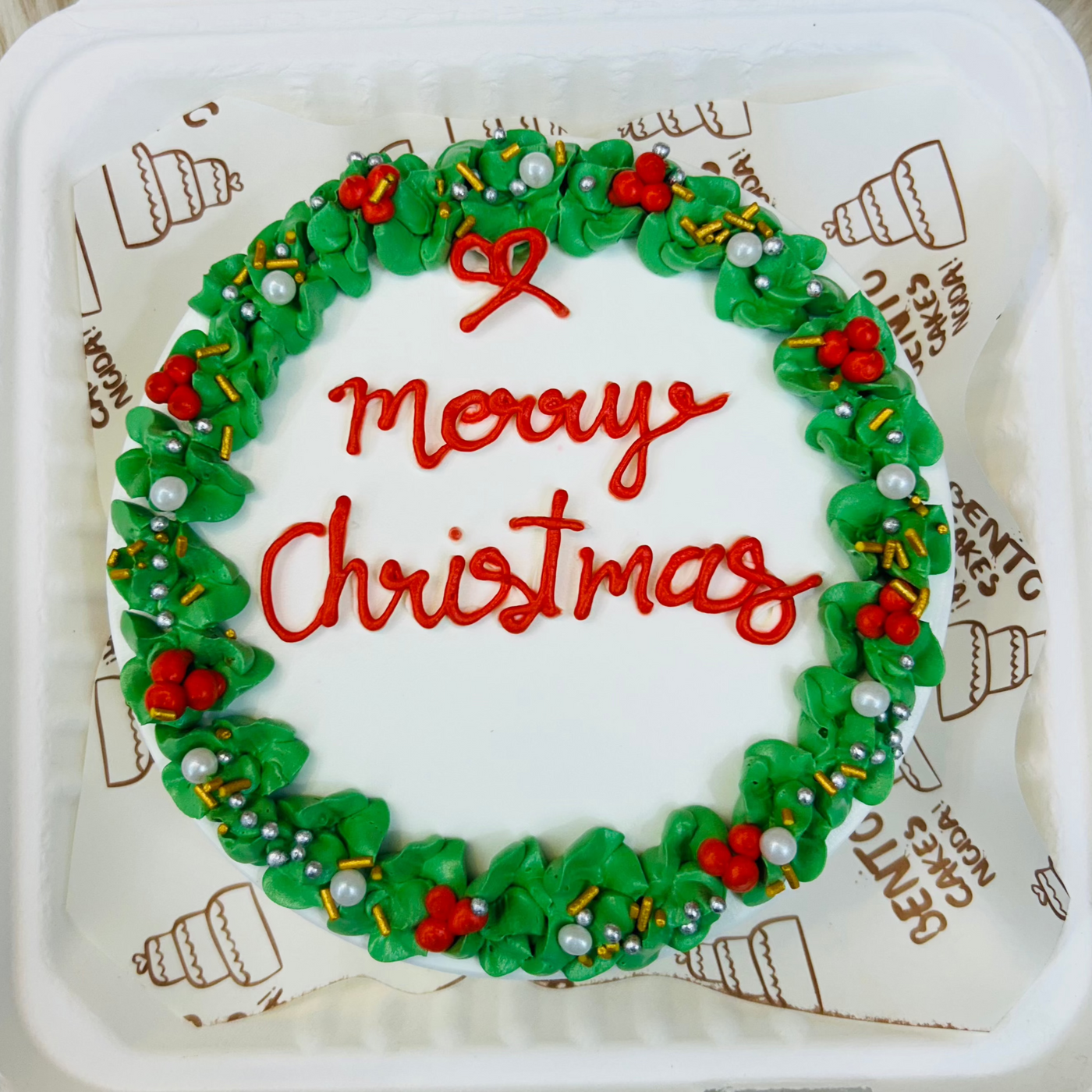 Merry Christmas Theme Beautiful Bento Cake - 450 Grams / Pineapple