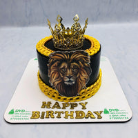 This decadent cake boasts a rich blend of cocoa and dark chocolate, topped with a luxurious lion crown design. Indulge in the bold flavors and elegant presentation of this Black Cake, perfect for any special occasion or as a delicious treat for yourself.