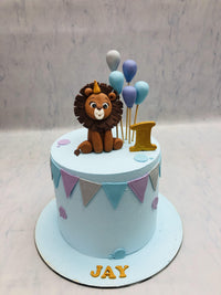 As an expert in the field, I introduce to you the Lion Theme Baby Birthday Cake. This professionally designed cake features a playful and adorable lion theme, perfect for a baby's special day. Made with top-quality ingredients, this cake will surely delight and impress both children and adults alike.