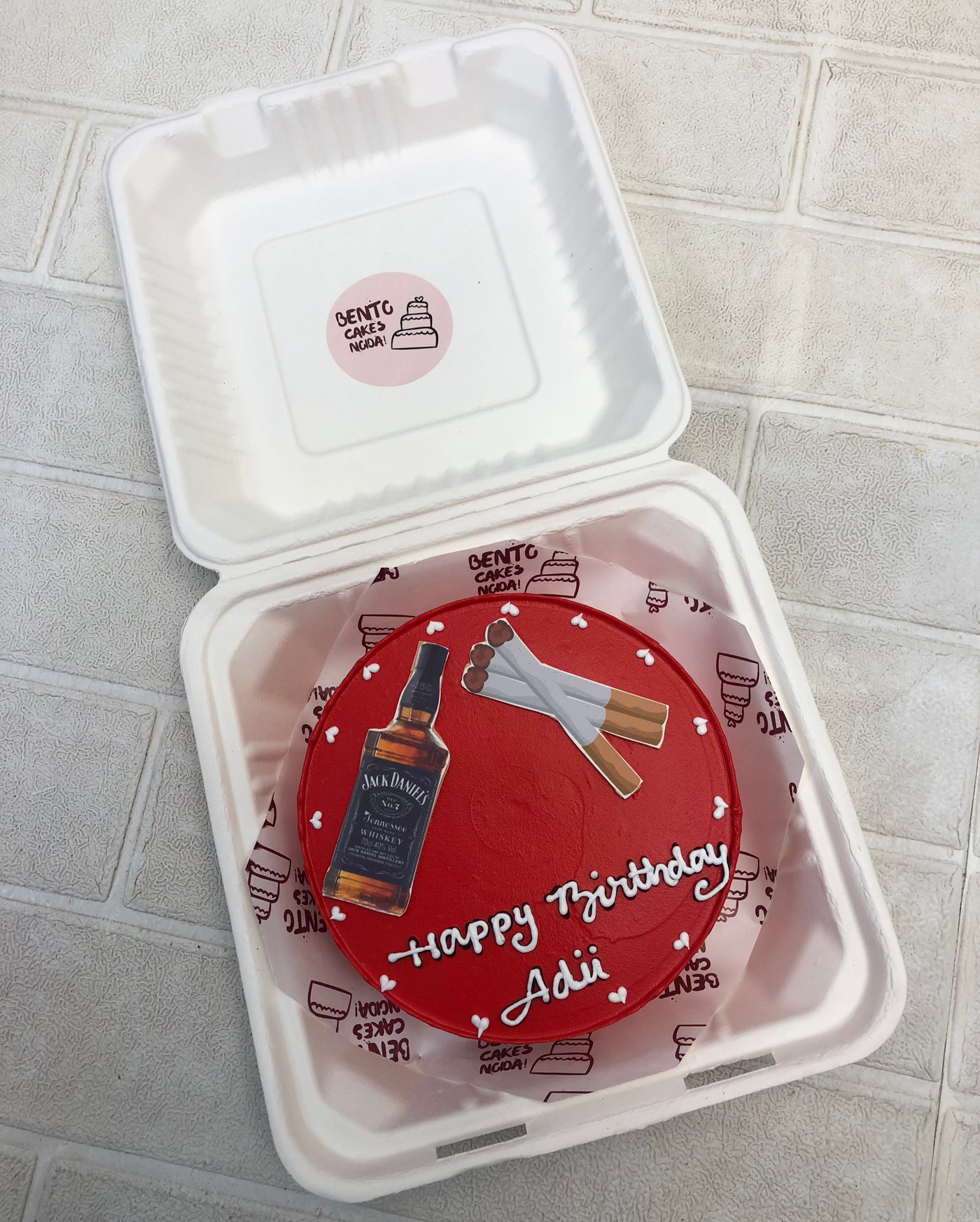 Please Note: Dark Color Icing On Cakes Sticks on Hands, Leave Stains and might be bitter in Taste.  Indulge in our exquisite Alcohol Theme Dark Red Bento Cake. Made with top-quality ingredients, this cake boasts a rich and decadent flavor profile that is sure to impress. It's the perfect treat for any special occasion. Satisfy your cravings and elevate your taste buds with this delectable dessert.